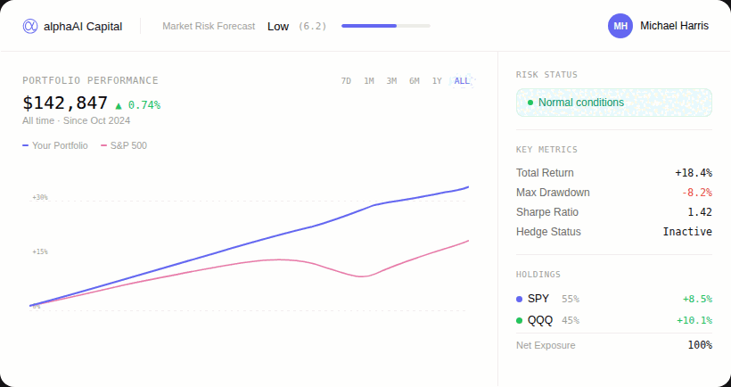 All investing involves risk, including the potential loss of principal. Past performance does not guarantee future results. alphaAI Capital Management LLC is an SEC-registered investment adviser. Registration does not imply a certain level of skill or training.